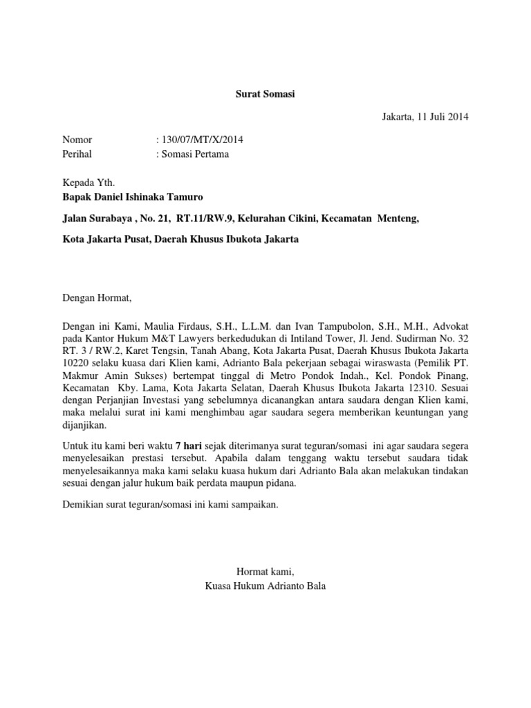 Contoh Surat Somasi Kepada Perusahaan Contoh Surat
